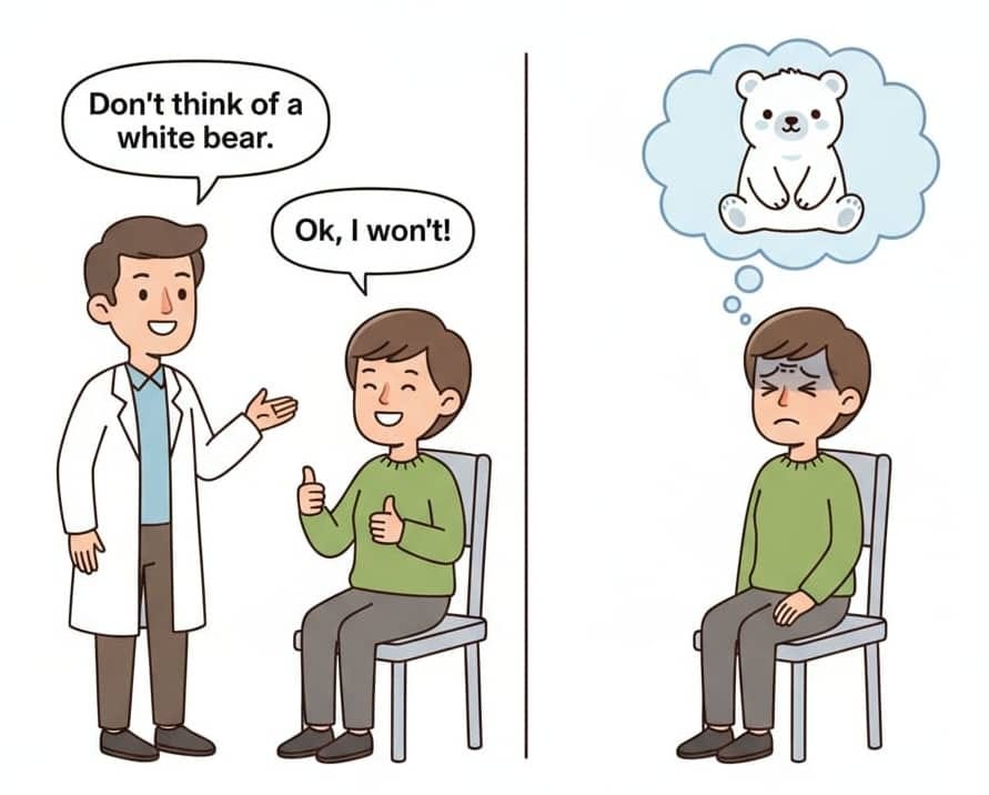 One group of participants was told to explicitly avoid thinking about a white bear. They were given a bell to ring each time the thought of a white bear crept into their thoughts.